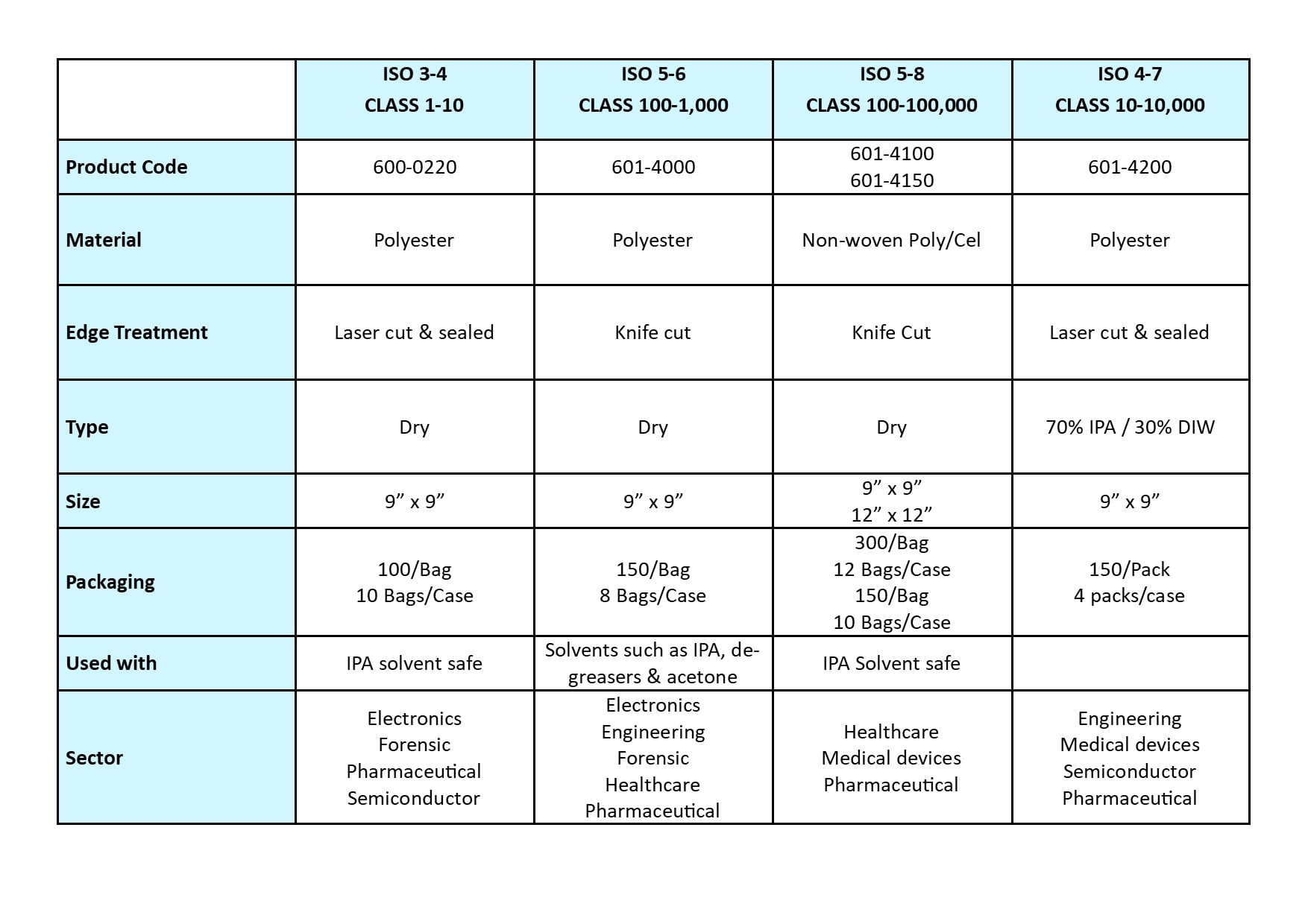Laser sealed edges ensure ultra low lint and particle levels, good absorbency and wiping efficiency.